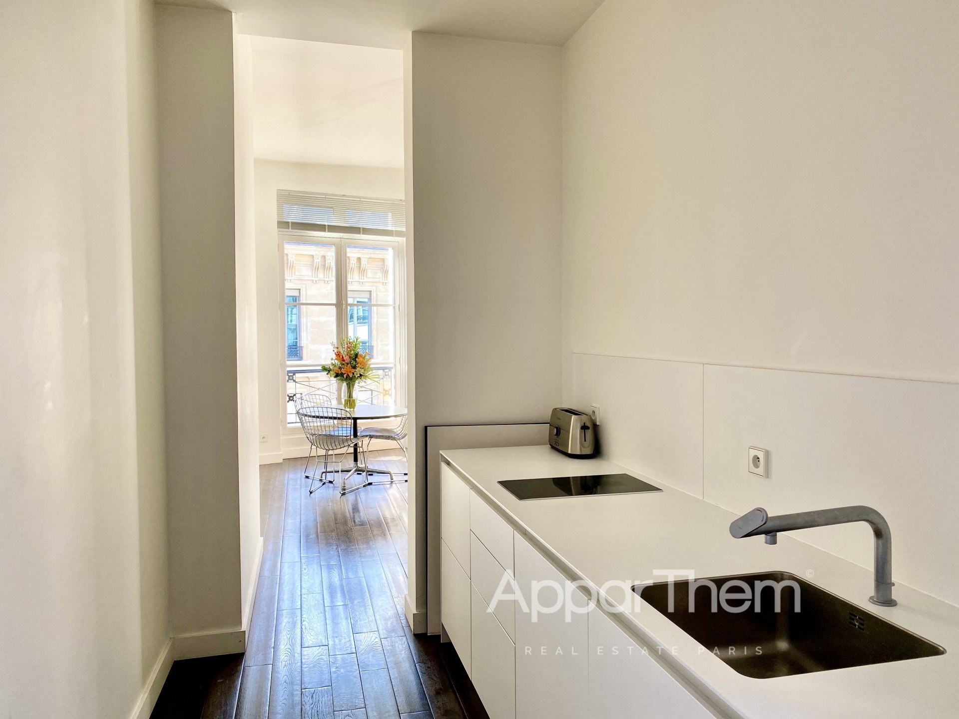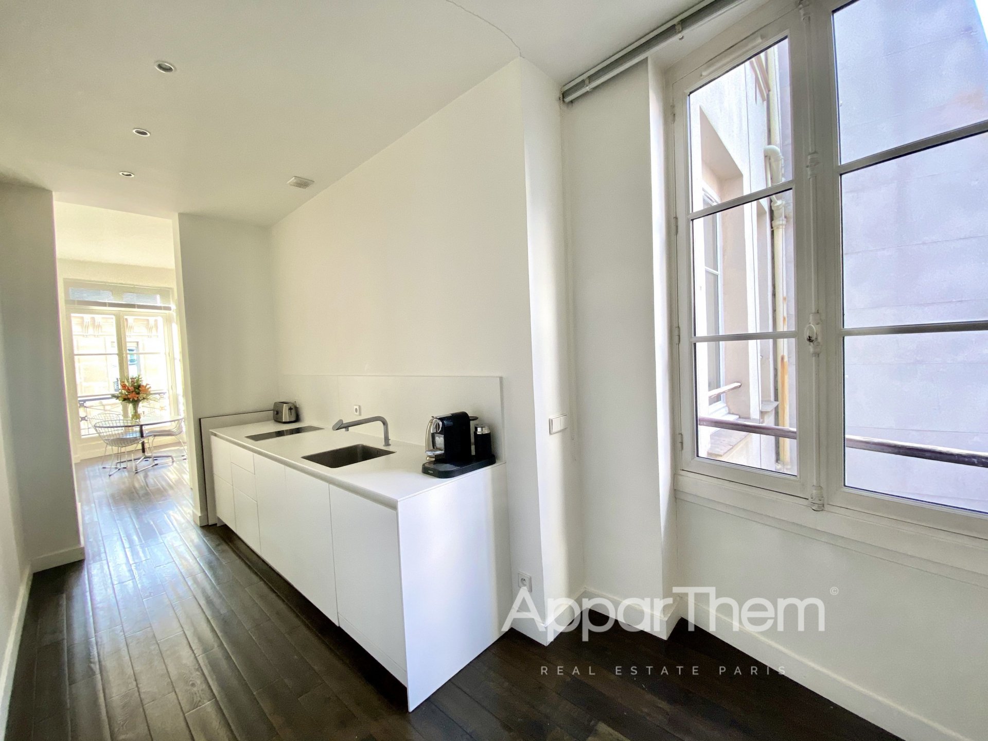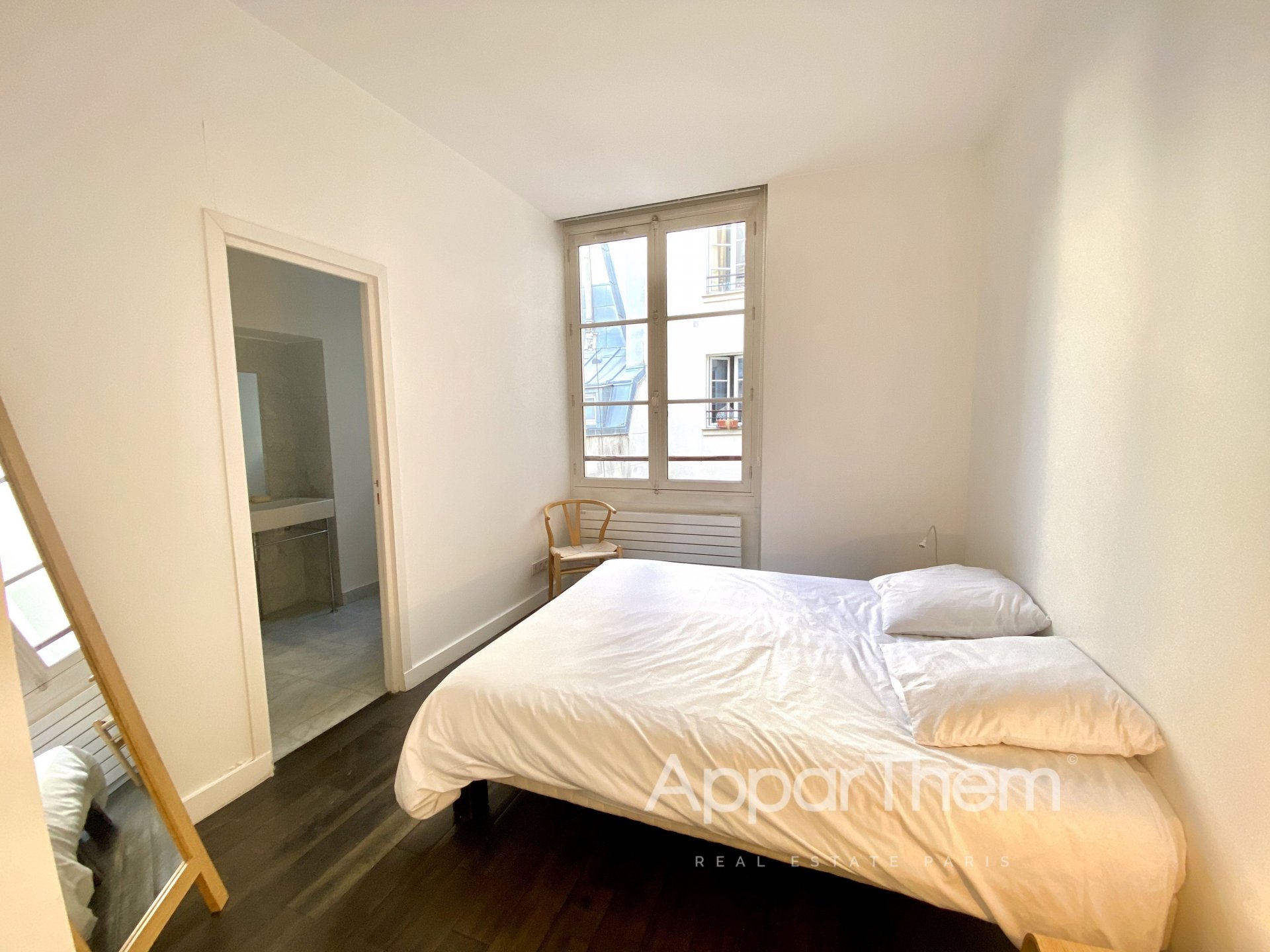 Dans un immeuble fin XVIIème face à la Banque de France, magnifique pied-à-terre idéalement situé entre la Place des Victoires et le Palais Royal.