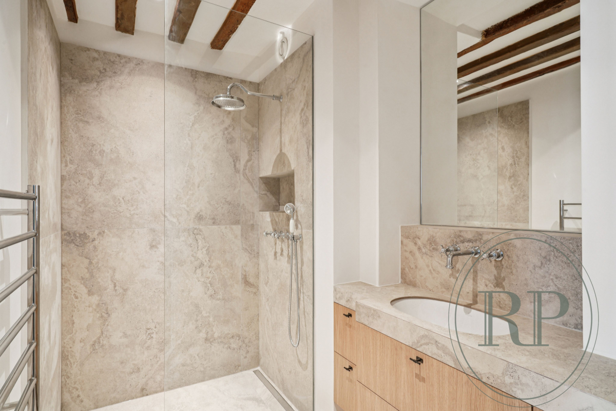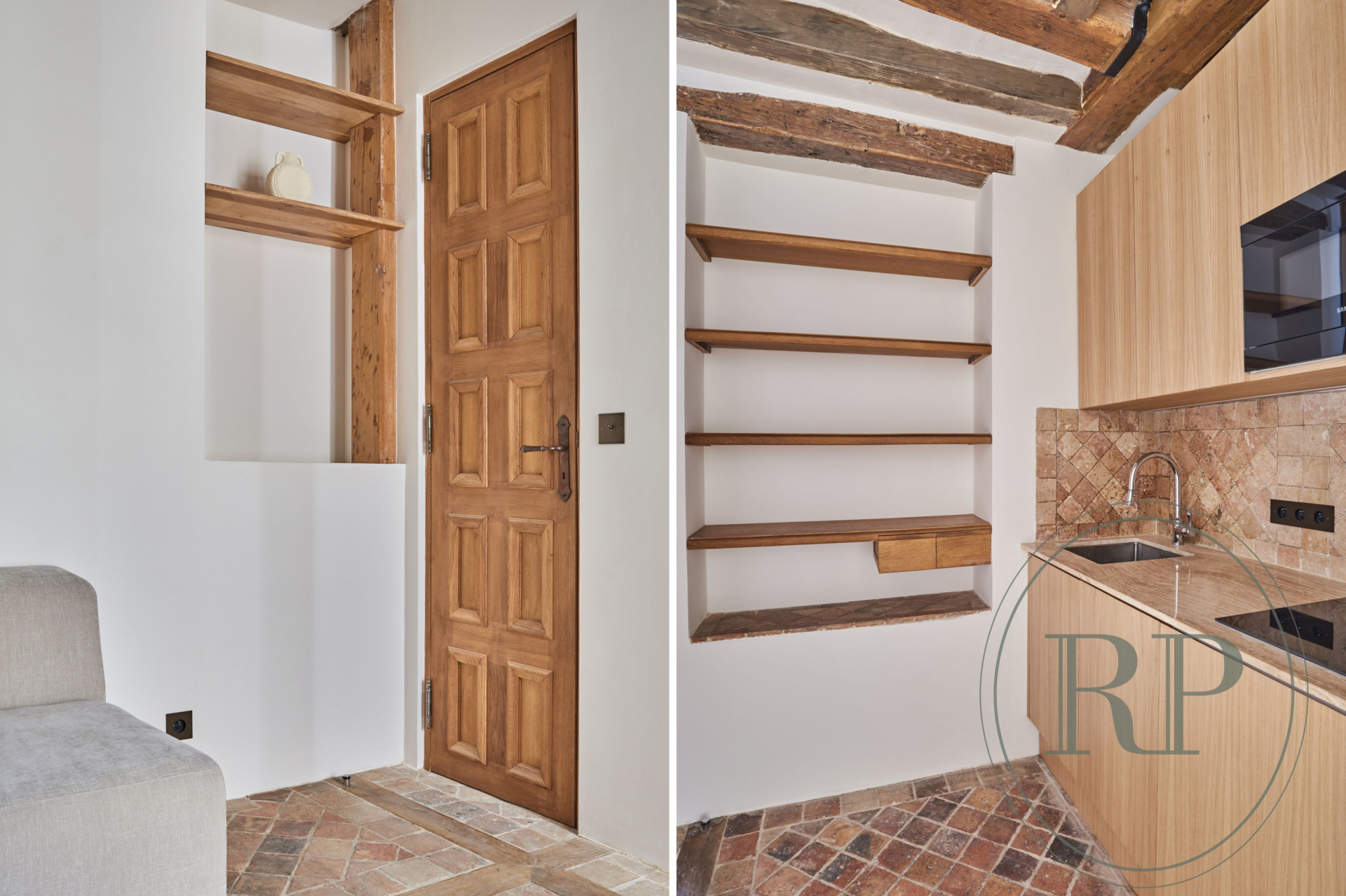 Entièrement rénové avec goût, l'appartement met en valeur ses éléments d'origine : murs en pierre, poutres apparentes, menuiseries traditionnelles, crémones, tomettes... Autant de détails authentiques qui séduiront les amateurs de charme parisien.