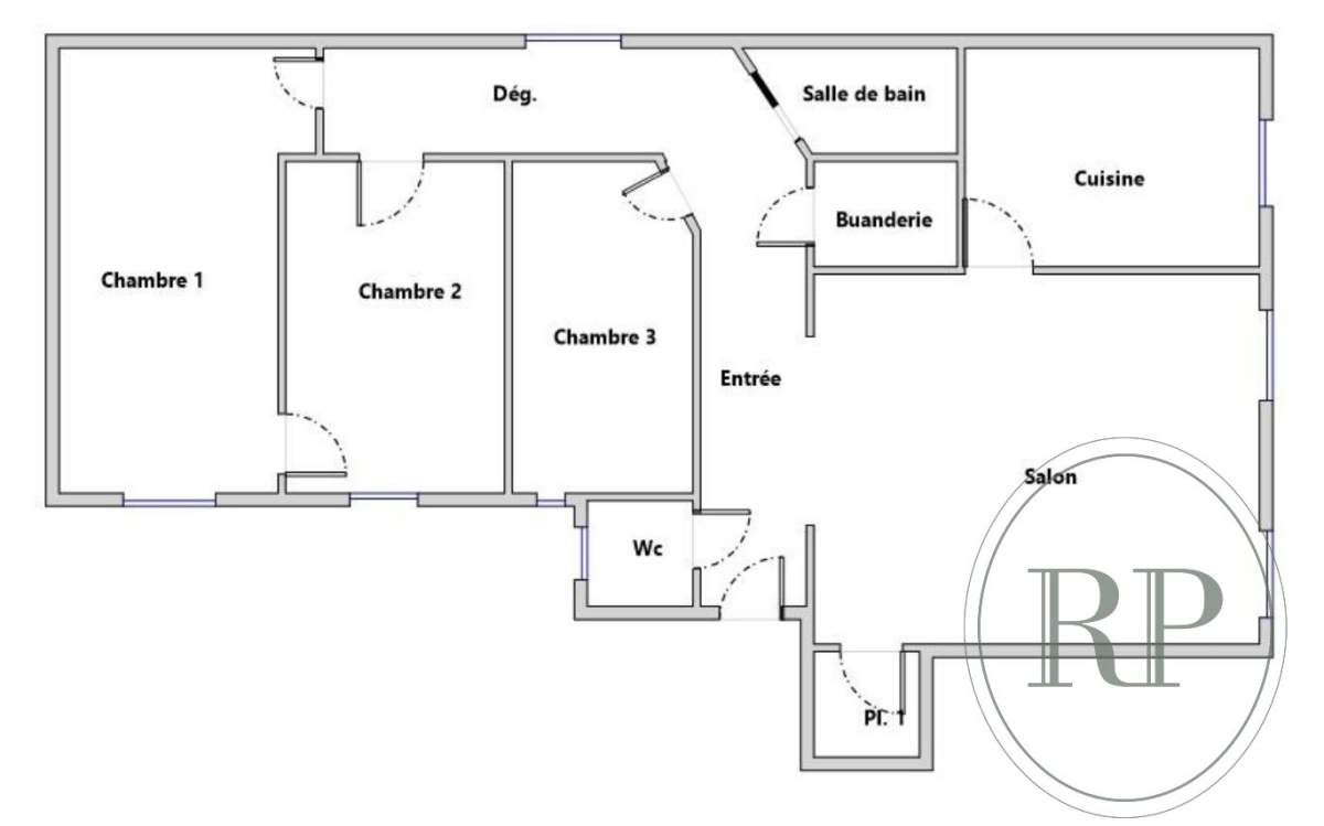 Cet appartement possède un plan très optimisé avec une entrée et water-closet indépendant, un double living coté rue et un espace cuisine dinatoire attenant. La partie arrière du bien (au calme sur cour) se compose de trois chambres, une buanderie et une salle de bain.
