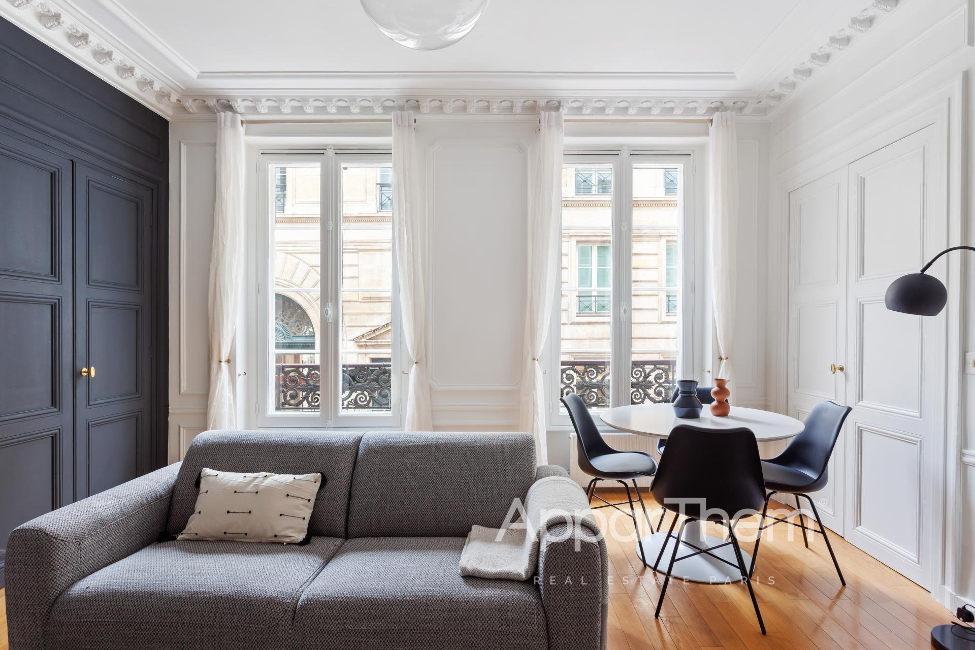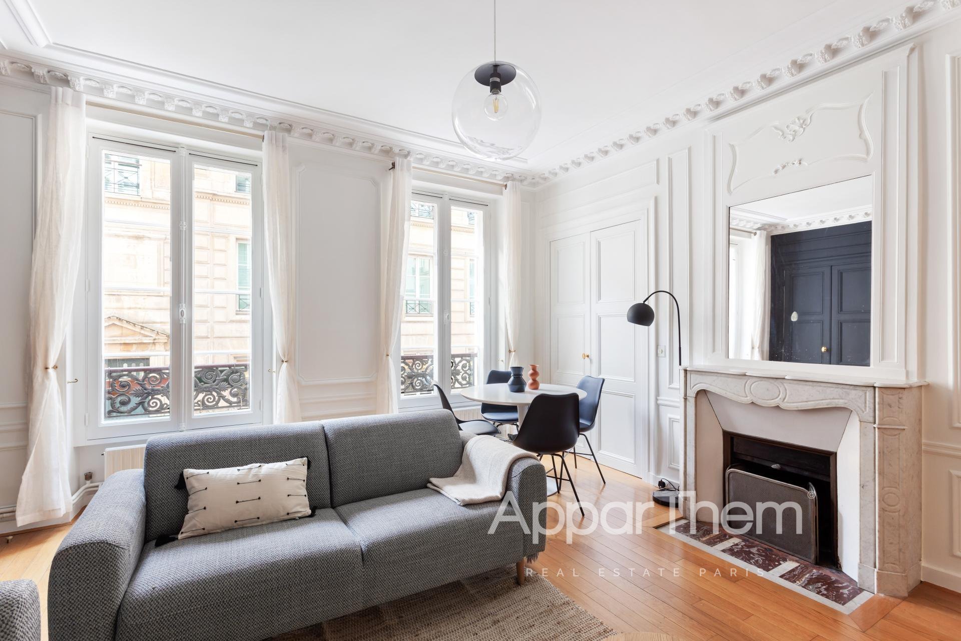 Bel appartement meublé de 4 pièces aux beaux volumes, lumineux, composé : d'un grand séjour, d'une salle à manger (possibilité de la transformer en chambre), d'une cuisine équipée, deux chambres dont une avec dressing, une salle de bains, une salle d'eau, toilettes indépendants.