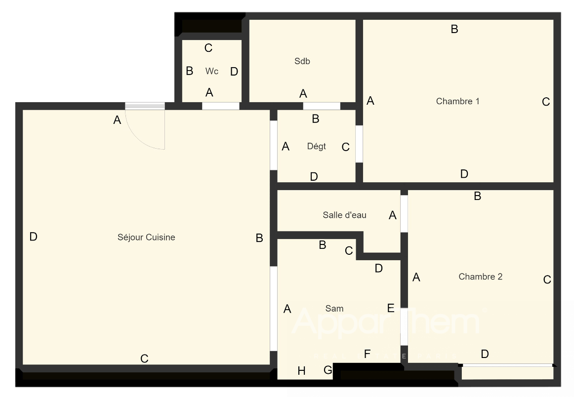 Il se compose ; d'un salon avec cuisine ouverte, ilot central, très lumineux, d'une salle à manger et de 2 chambres ayant respectivement salle de bains et salle de d'eau.