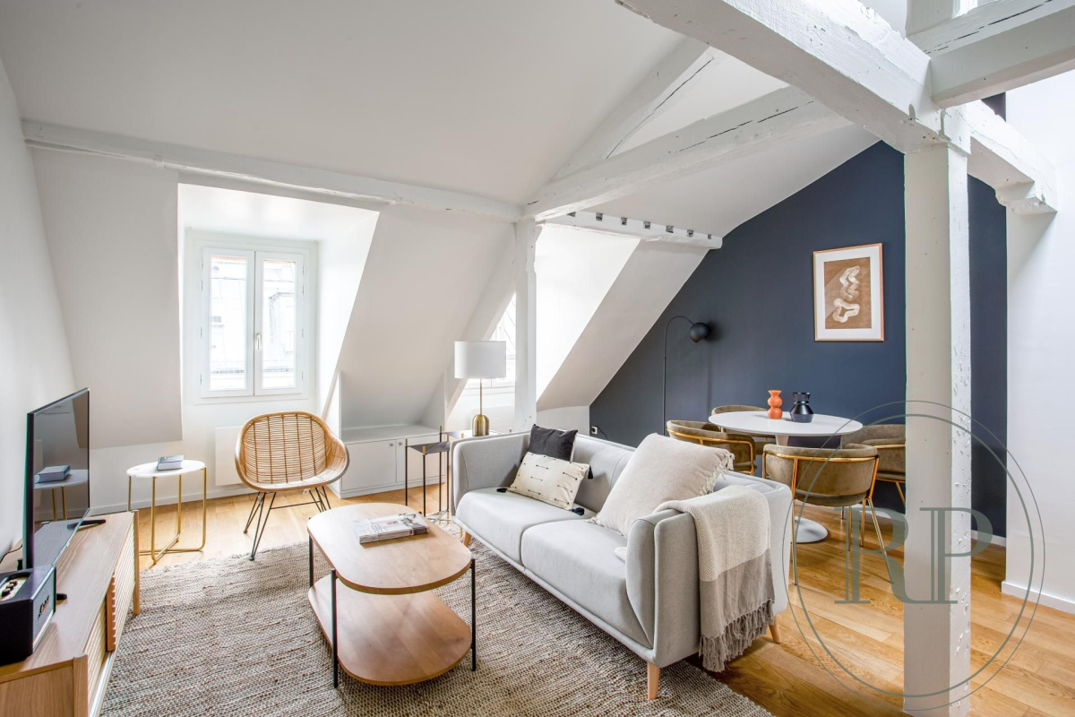 Cet appartement rare, baigné de lumière, séduit par ses volumes remarquables, avec une hauteur sous plafond atteignant 3,20 m au faîtage.
